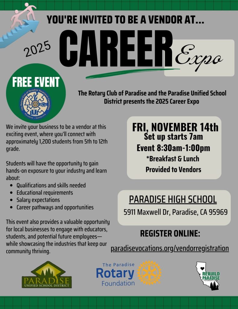 Are you interesting in becoming more involved in the Paradise community and helping with the rebuild effort? The Rotary Club of Paradise may be the right fit for you. Read more about why Rotary is important and how it enriches the lives of our members by using the link below.